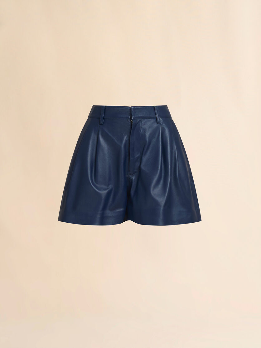 Soft and sumptuous nappa shorts with double darts on the front and belt loops. Side pockets and welt pockets on the back. Zip closure. Leather label with embossed Marni logo on the back.