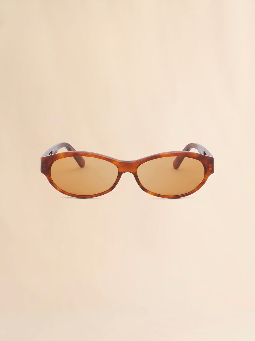 Ozound-Sonnenbrille aus Acetat mit schlanker Silhouette und ovalen Gläsern. Breite, geschwungene Bügel mit ikonischem Marni-Logo.