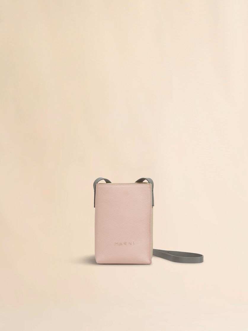 Museo Nano Tasche aus hellrosa und beigefarbenem Leder mit Marni-Symbolstickerei in Kamelie/Winterweizen