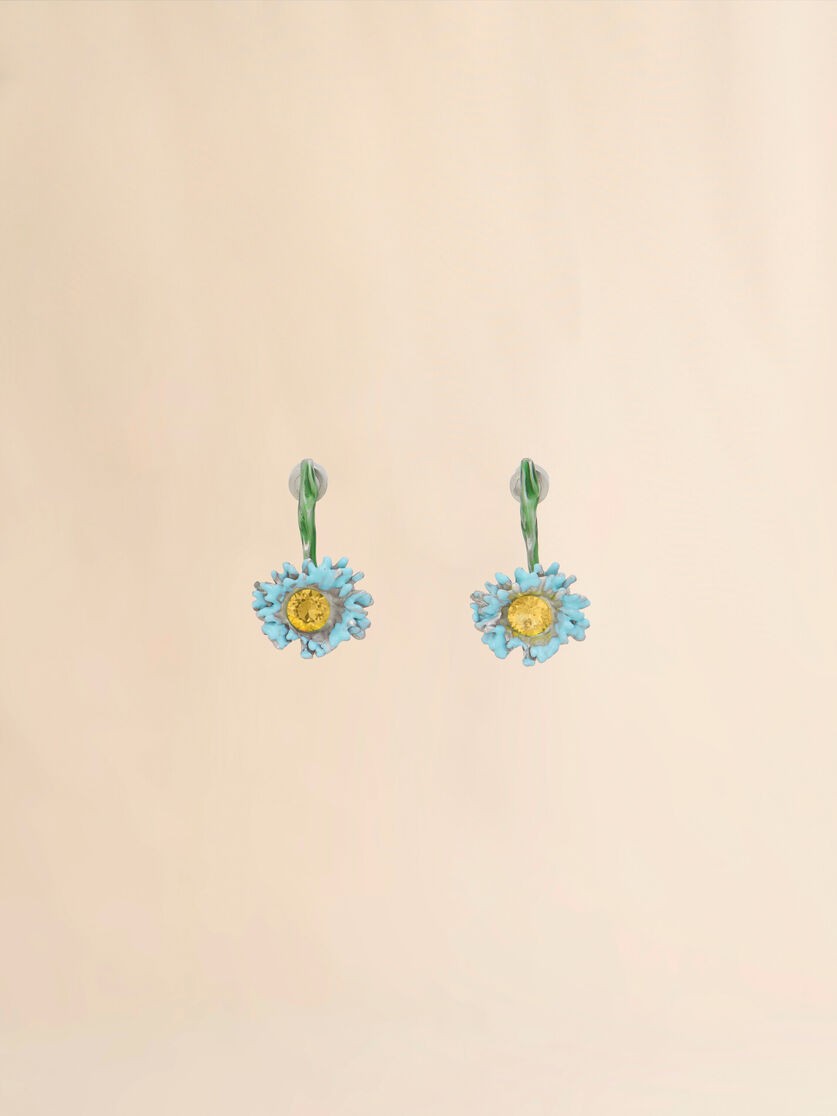 Ohrhänger Flower Pop aus emailliertem Metall und Steinen, Illusionblau