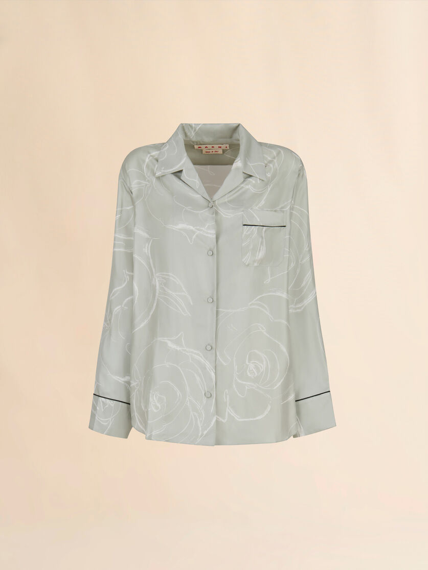 Pajama shirt made from pure silk twill. Printed with this season's Aurora wispy rose pattern, created using a special scraping technique on wet paint. Regular fit with chest pocket. Long sleeves finished with contrasting piping at the cuffs. Button closure.