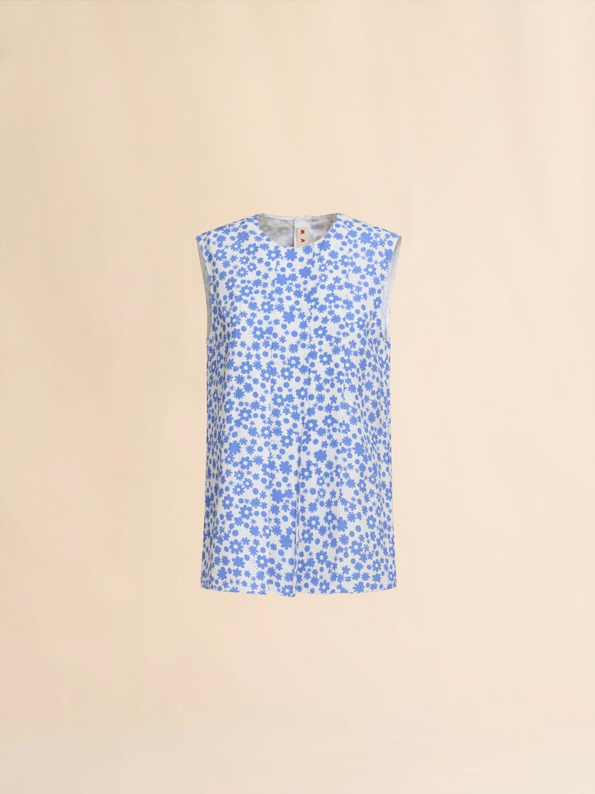 Barr gan muinchillí satin Enver le prionta Pop Fields an tséasúir seo ar fad. Gearradh díreach le muineál criú agus pléadálacha fuaite cothroma ar an tosaigh. Dúnadh zip ar chúl. Críochnaithe le scoilteanna beaga taobh agus Siombail Marni lámhdhéanta bróidnithe ar an tosaigh.