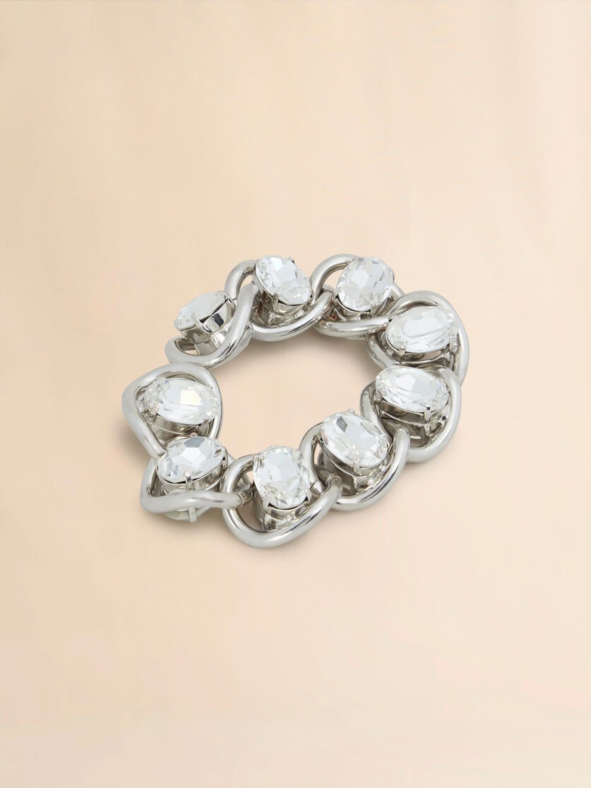 Bráisléad slabhra miotail tiubh i ndath pallaidiam. Tá gach nasc mionsonraithe le rhinestone socraithe le bioráin.