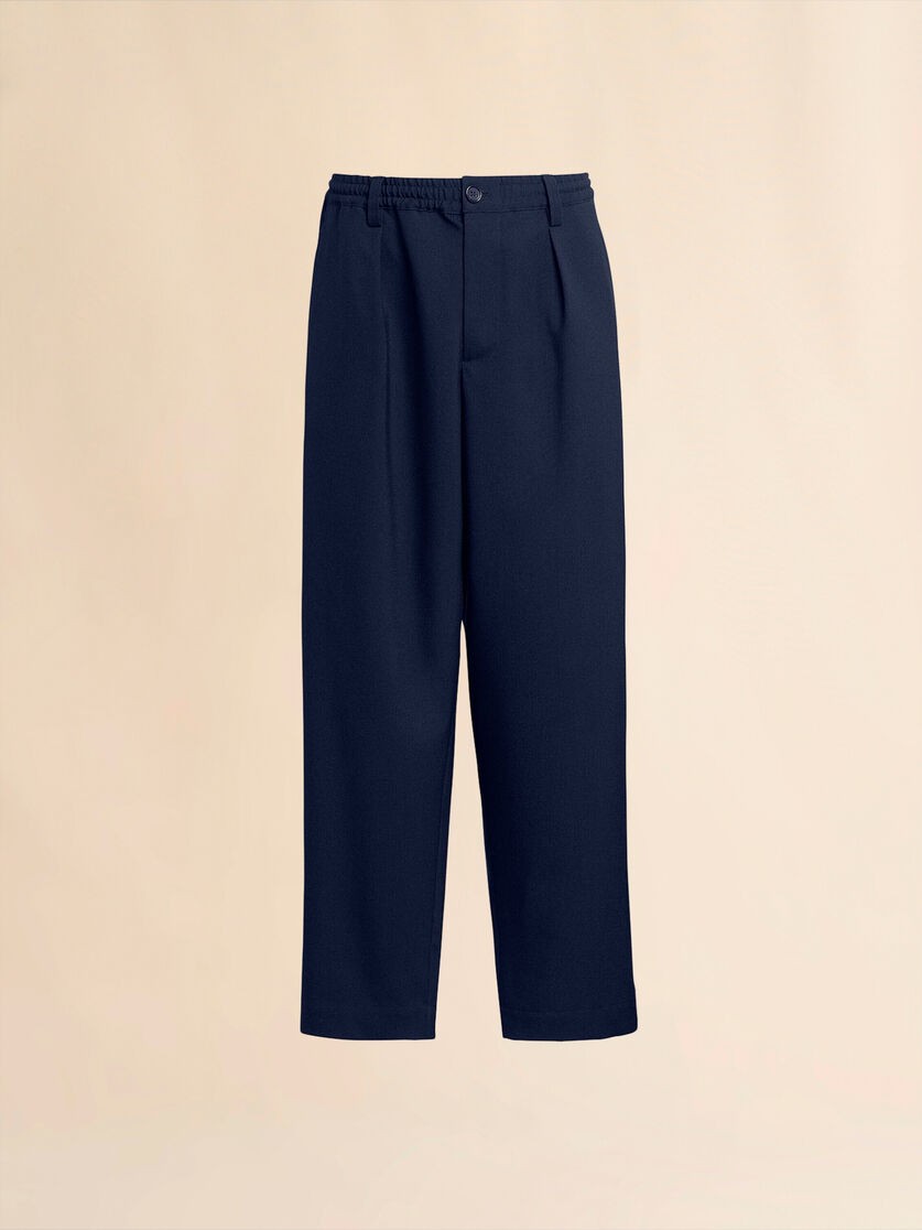 Brístí gearrtha suas go dtí an rúitín le pléadálacha tosaigh. Leaisteach sa choim le lúba crios. Pócaí taobh agus pócaí cnaipithe ar chúl. Cosa líneáilte. Dúnadh le cnaipe agus zip. Feistiú scaoilte.