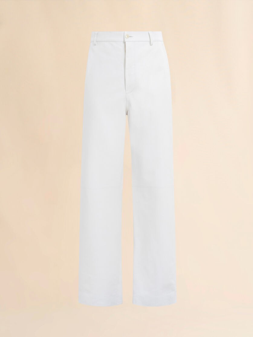 Brístí fada i nappa bog réidh. Feistiú rialta le cos díreach. Pócaí taobh agus pócaí welt ar chúl. Dúnadh zip agus cnaipe. Líneáilte.