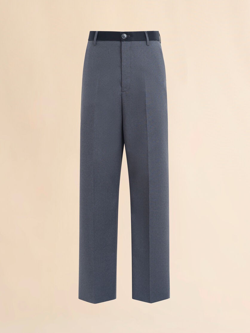 Brístí olann trópaiceacha oiriúnaithe le crios agus pócaí cúil codarsnacha. Feistiú rialta le fillte brúite agus pócaí taobh. Dúnadh zip agus cnaipe.
