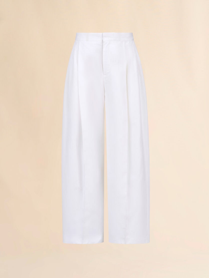 Bríste Poplin Bán le Pléataí Maxi Lilywhite