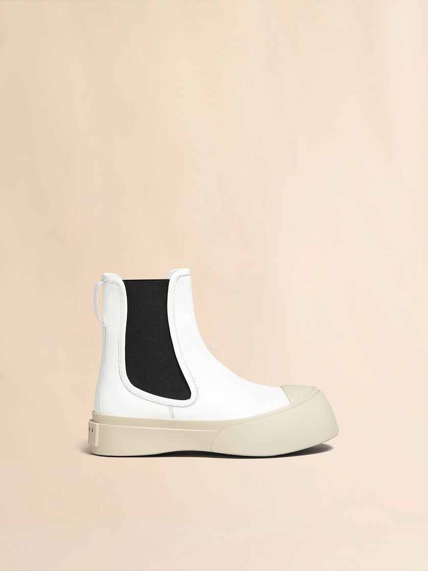 Buataisí Pablo Beatle i leathar nappa. Líneáil leathair. Bonn istigh bog leathair. Bonn ardáin thiubh i rubar le lógó Marni ar a chúl.
