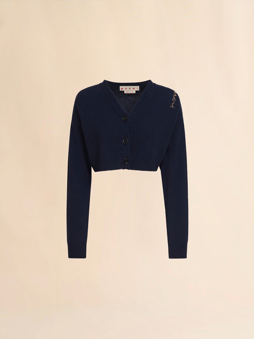 Cairdigan Cashmere Gorm Gearr le Marni Symbol Abyss