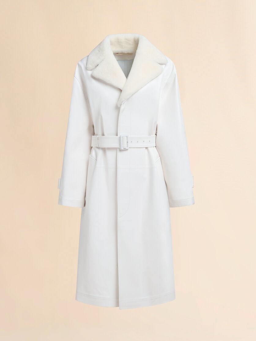 Cóta Duster Nappa Bán le Coiléar Shearling Lilywhite