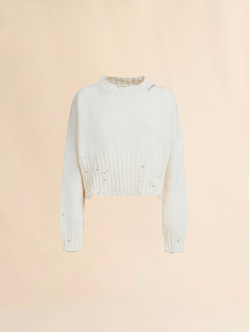 Geansaí Cadáis Bán Scaipthe Lilywhite