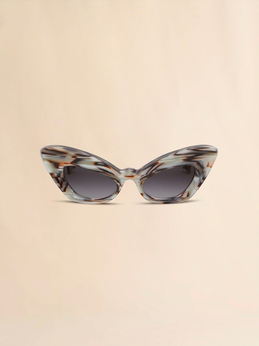 Spéaclaí gréine Caelicola déanta as aicéatáit mhór. Cur i láthair spraíúil áibhéalach ar scáthchruth clasaiceach cateye, ag tarraingt inspioráide ó mhaisc amharclainne. Imill shnasta suntasacha, ag clúdach lionsaí domhain. Teampaill thiubha le barr gabhlach sainiúla, maisithe le litreacha Marni cruanta curtha i bhfeidhm de láimh ina n-aonar.