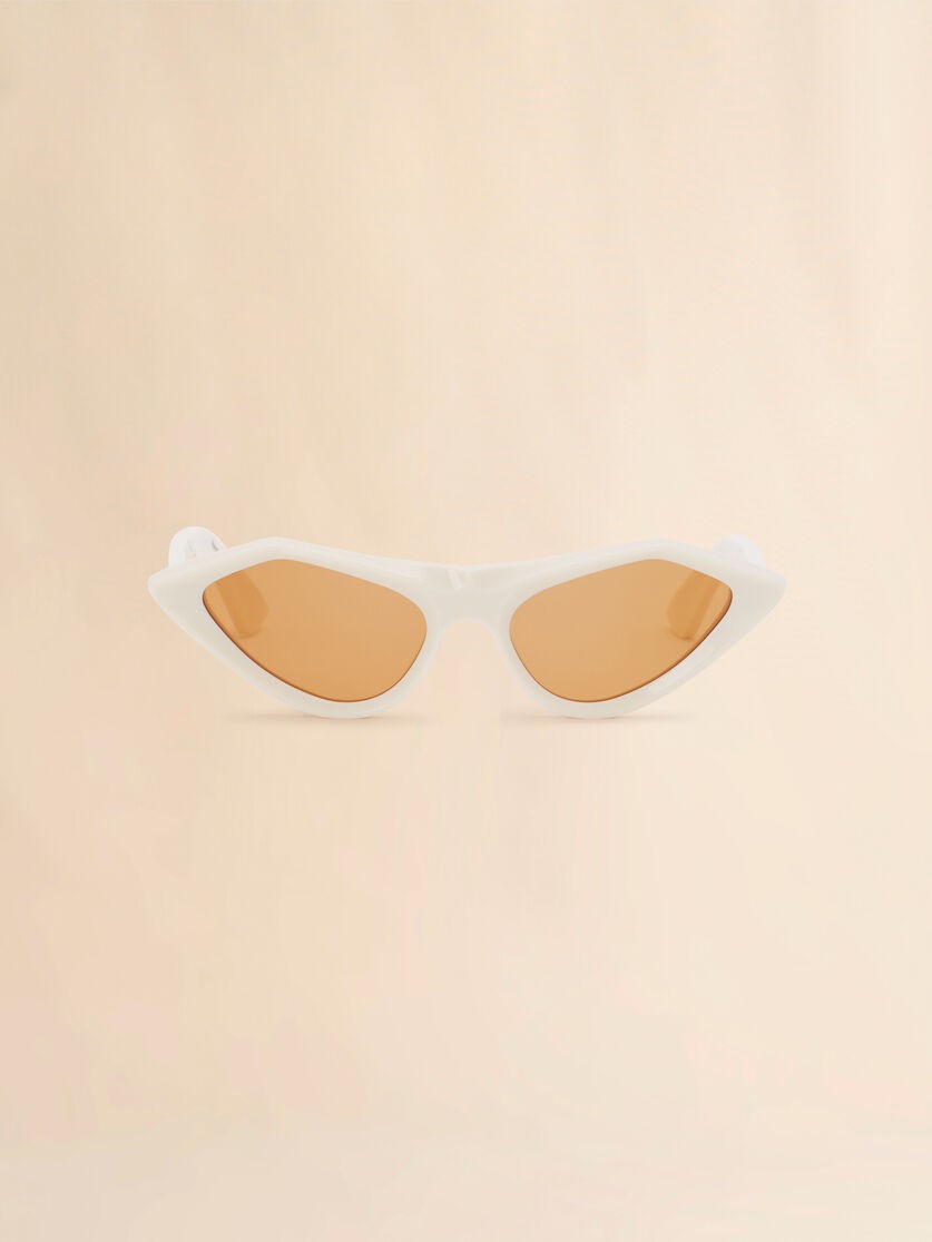 Spéaclaí gréine Tikbarri déanta as aicéatáit. Cruth geoiméadrach galánta le taobhanna bioracha. Siombail Marni miotail ardaithe ar an teampall seachtrach.