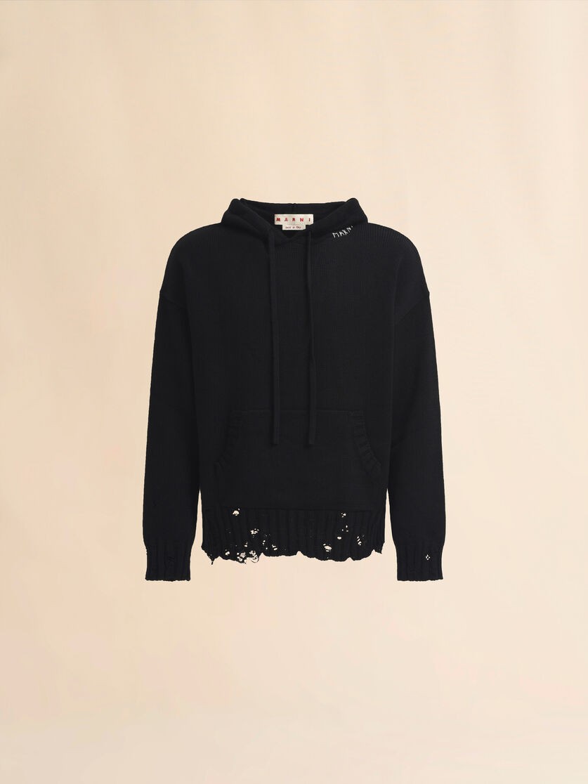 Hoodie Cadáis Scaipthe le Bróidnéireacht Shiombail Marni Dubh