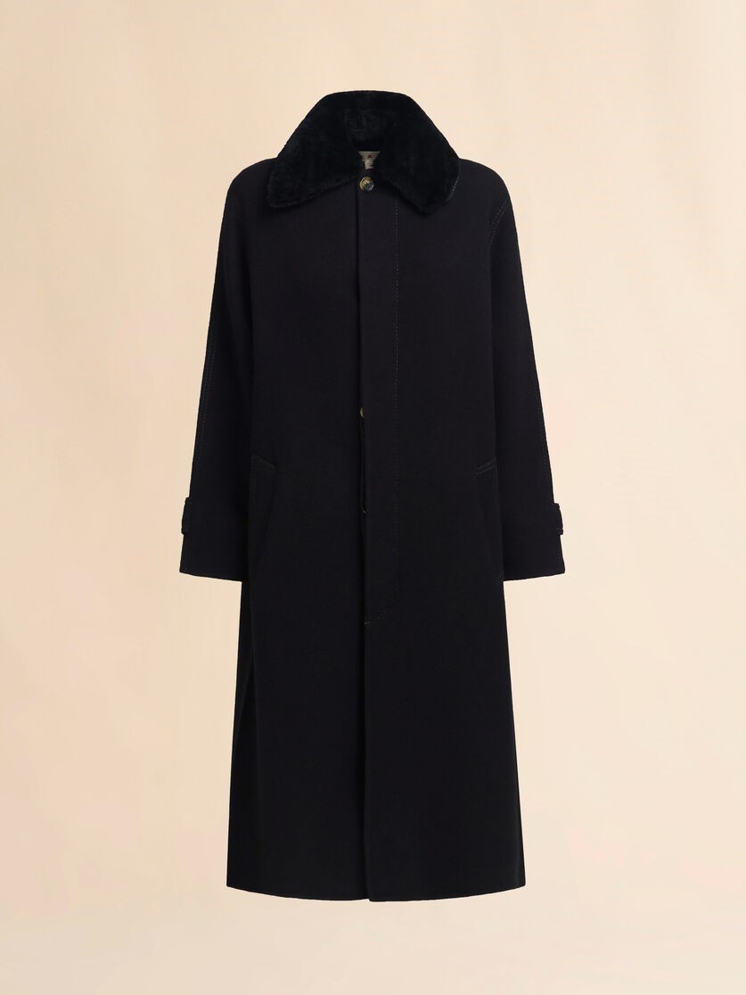 Cóta Olanna agus Cashmere le Coiléar Shearling Dubh