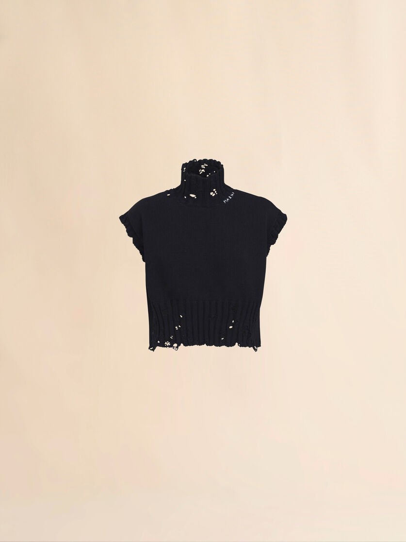 Veist ghearr muineál turtleneck. Feistiú boscach. Lógó bróidnithe de láimh ar an tosaigh.