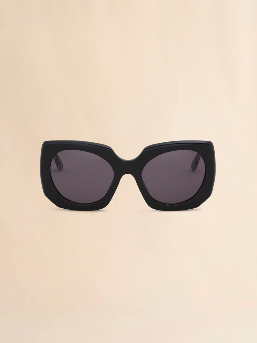 Jellyfish Lake sunglasses crafted from black acetate. Featuring a geometric squared silhouette with milled edges. Metal temple core with Marni logo. Black lenses.