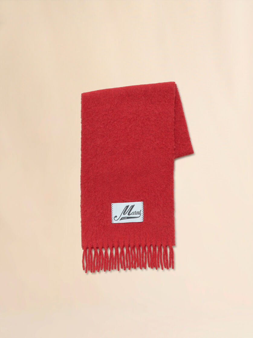 Brushed alpaca scarf. Solid colour. Fringed edges. Italics Marni logo label in satin.