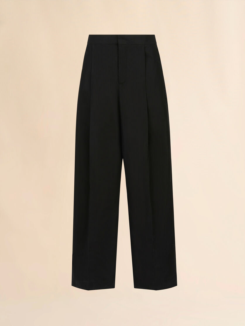 Formal wide-leg trousers made from organic cotton poplin with a compact feel. Styled with voluptuous front pleats. Relaxed mid-rise fit. Concealed zip and hook closure. Side pockets and back welt pockets.