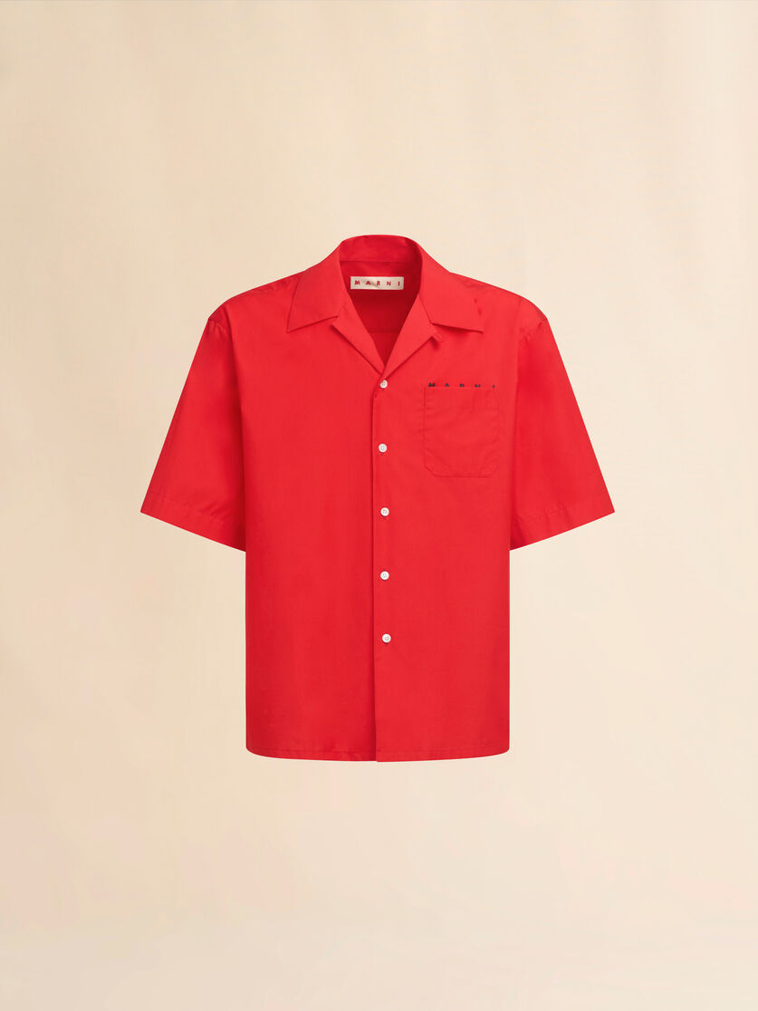 Red Organic Poplin Bowling Shirt With Hidden Logo Arbutus