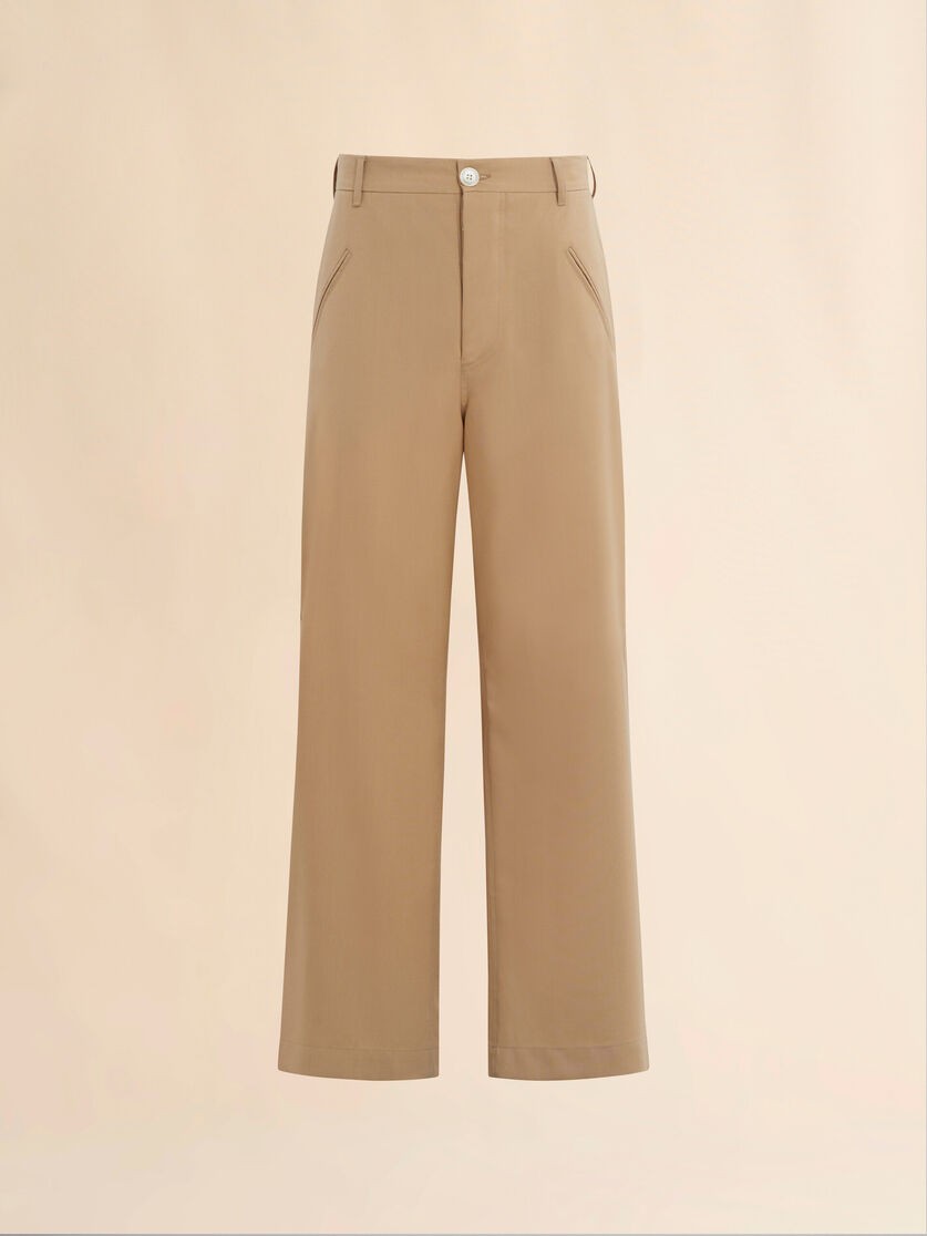 Tropical wool trouser cut to a regular fit with a straight leg. Welt pockets on the sides and back. Lined. Zip and button closure.