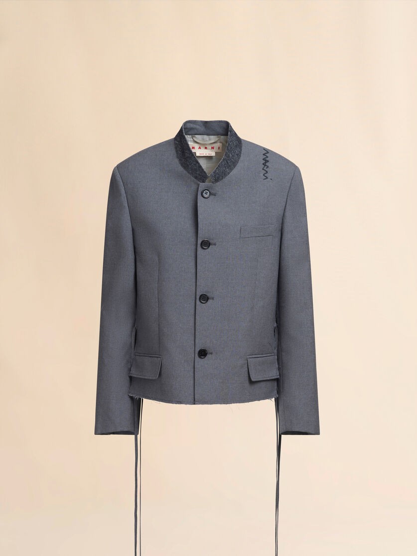 Grey Jacket With Mandarin Collar And Marni Symbol Graphite
