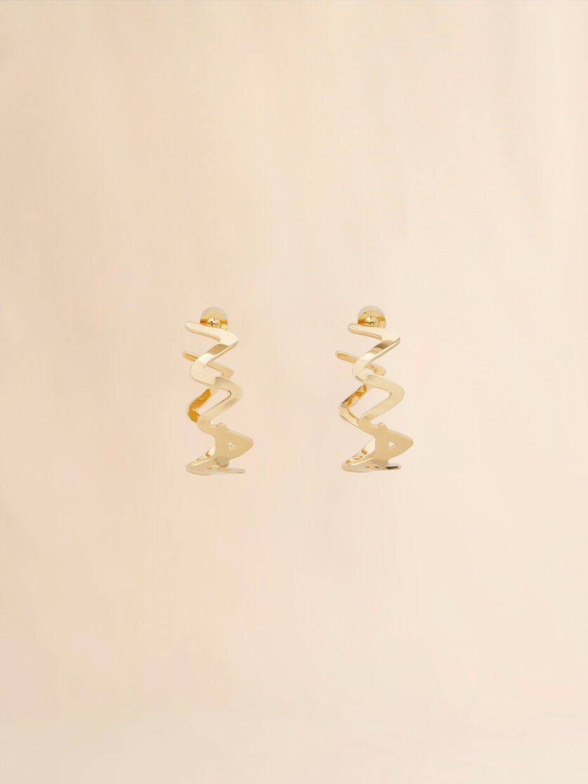 Sculpted metal hoop earrings in the shape of the distinctive Marni Symbol logo. Post closure.