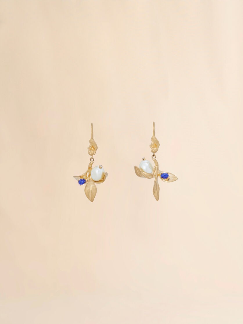 Pearls And Stones Flower Delirium Drop Earrings Gold