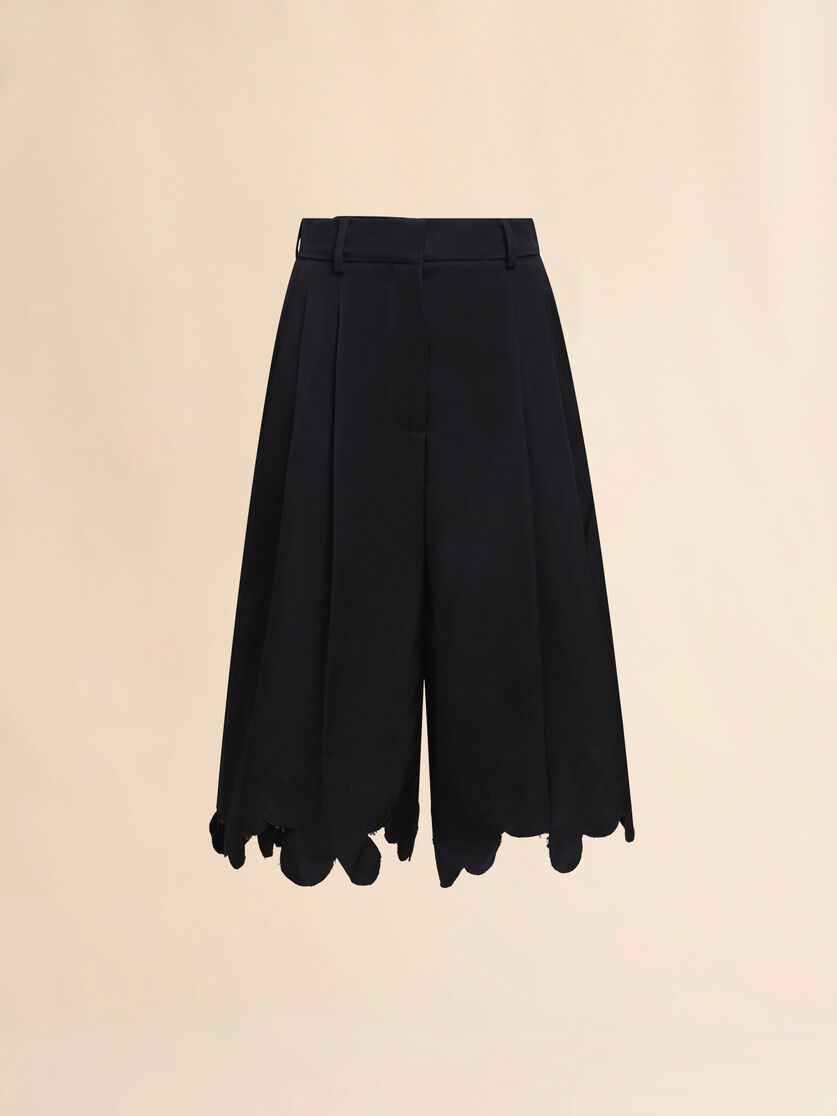 Duchess Silk Bermuda Shorts With Scallop Cut Hem Black
