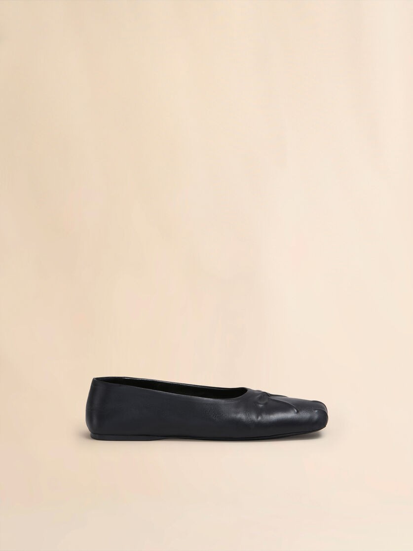 Square-toe ballet flats, crafted from soft nappa leather. Handcrafted embossed bow detail on the toe. Tonal leather lining and sole.