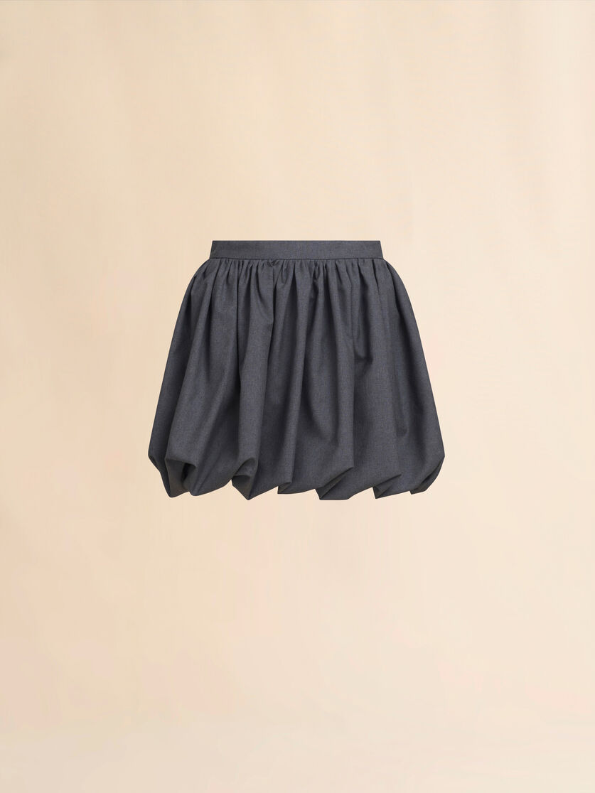 Voluminous balloon Miniskirt cut from pure fresh wool. Lined with a regular waist, and rear zip.