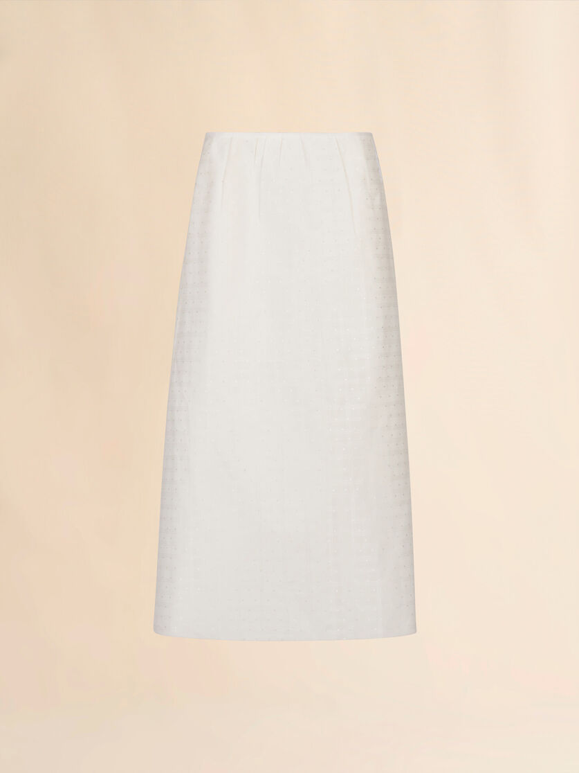 White Toile Skirt With Check And Dots Jacquard Motif Natural White