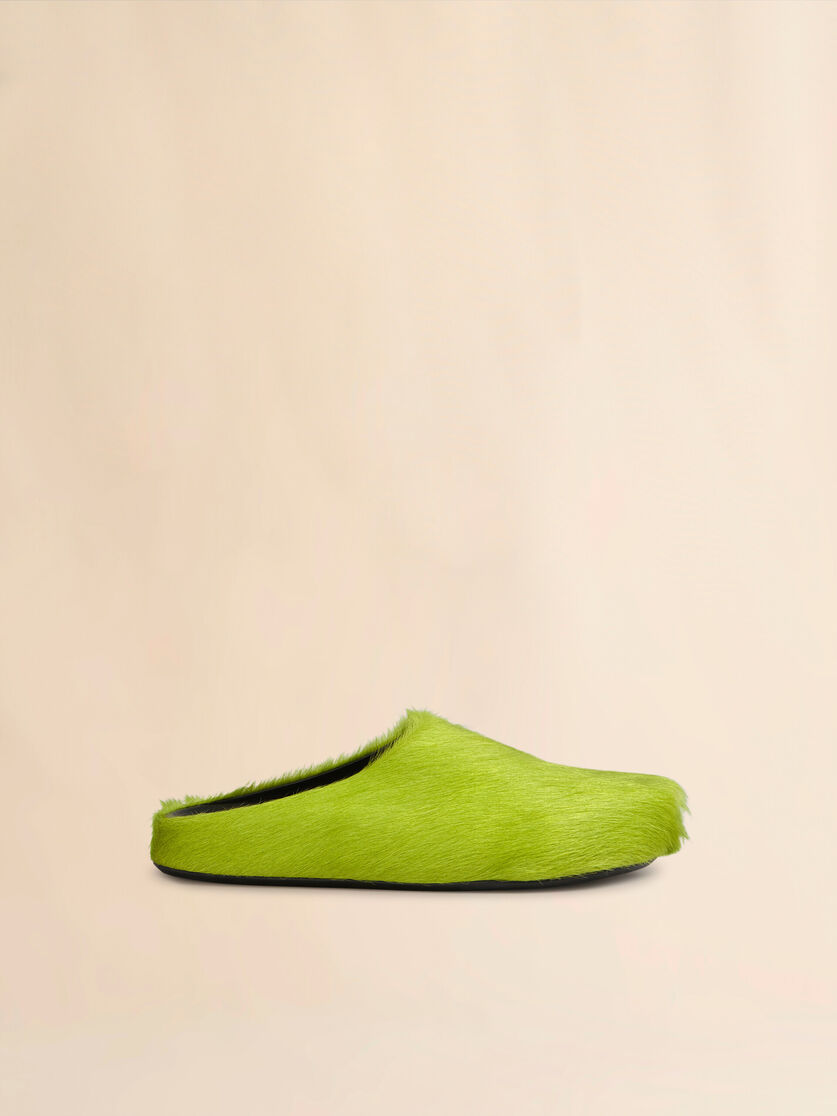 Green Long Haircalfskin Fussbett Sabot Lightlime
