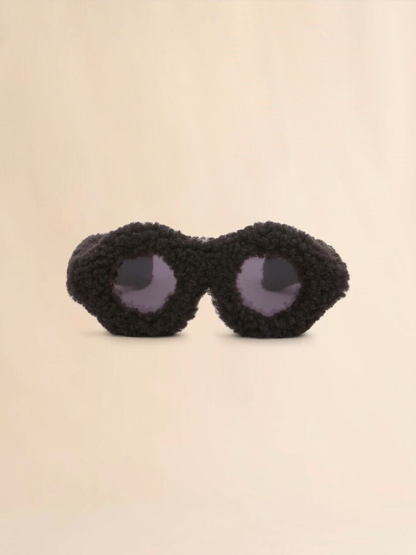 Fur-coated, round, acetate Jantu sunglasses with black lenses.