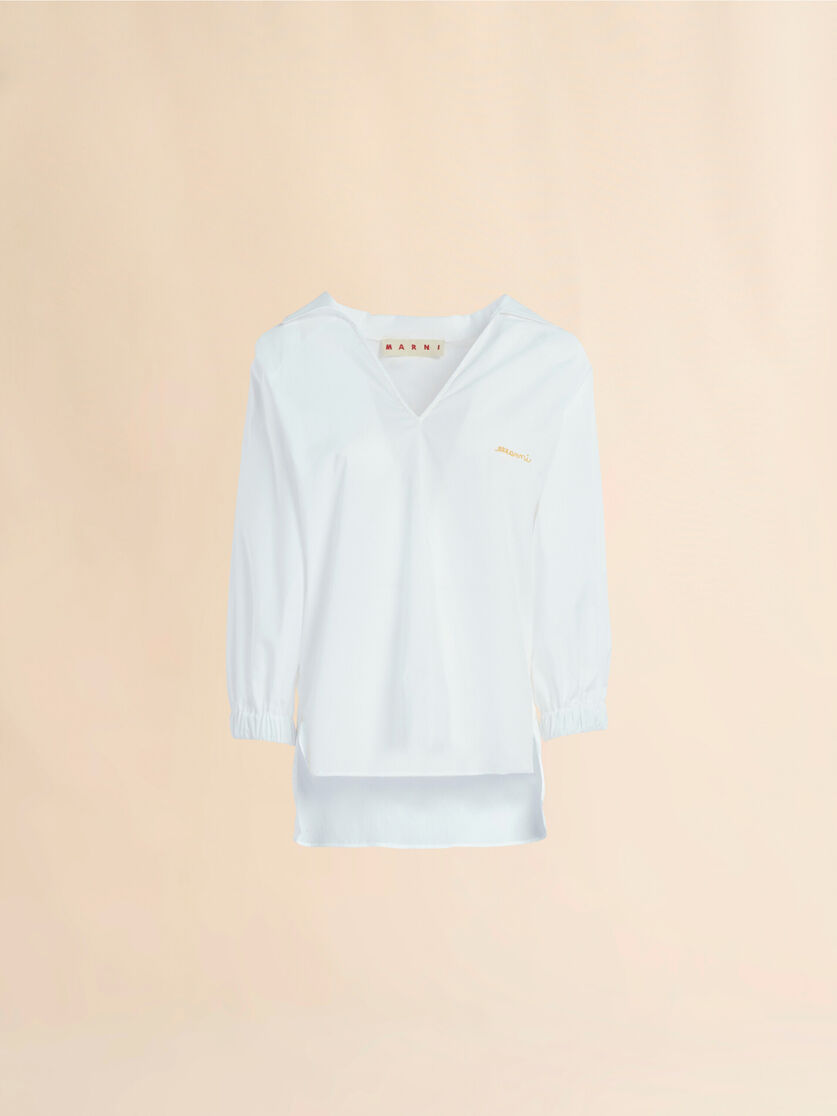 Top with polo neckline. Three quarter sleeves with elasticated cuffs. Detailed with decorative stitching on the front. Regular fit. Embroidered Marni logo.